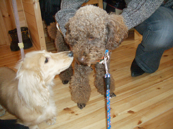 おとなしいロック君、 プリアラとも距離をおいて ご挨拶、うるさくてゴメンネ〜。