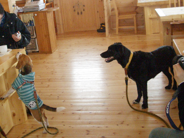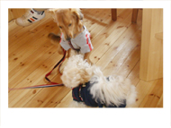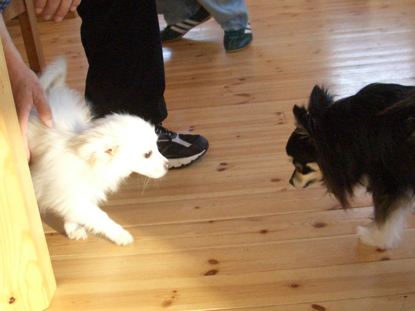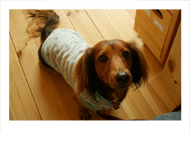 男らしいエディ君・ 甘えん坊のベルちゃんは 珍しいワイヤーダックスです。 ベルちゃんはずっと 膝の上でしたね〜。