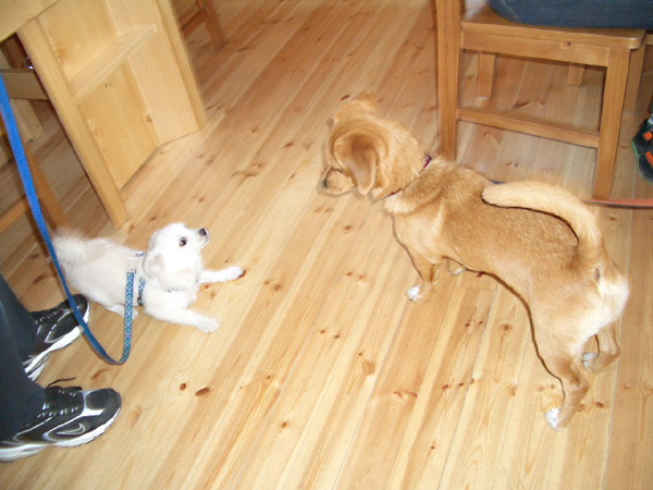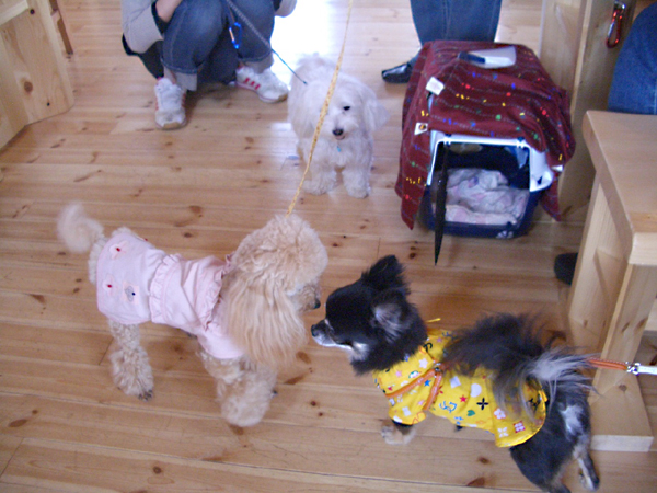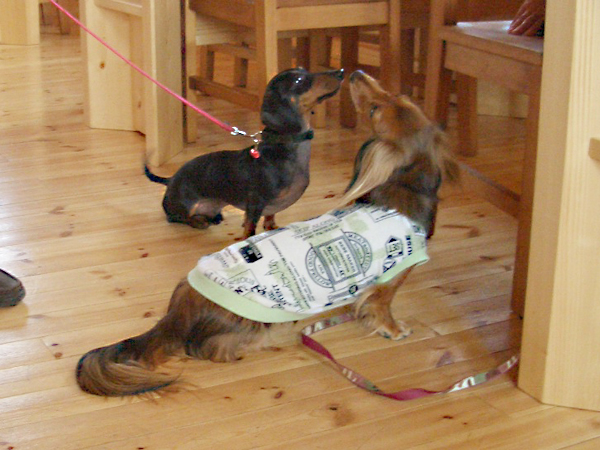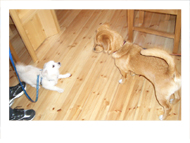 初めましてのご挨拶は うまく出来ましたか? どちらもフレンドリーな ワンちゃんです。