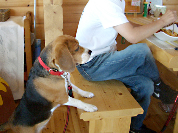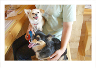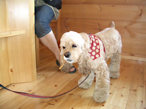 ワンちゃんがちょっと苦手なの。 でもカフェではオヤツを美味しそうに 静かに食べてたよ。