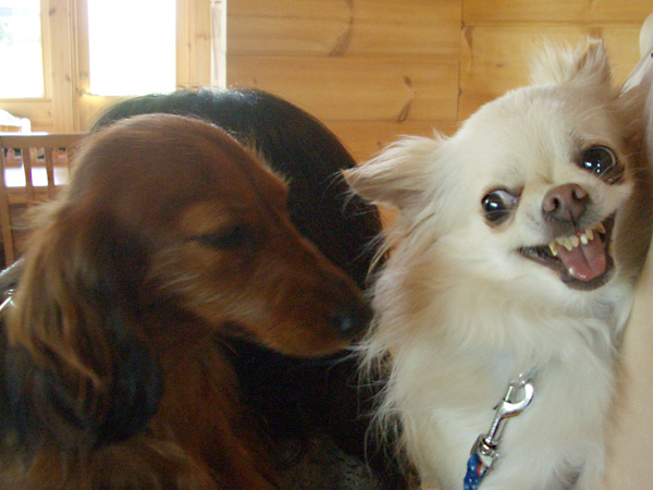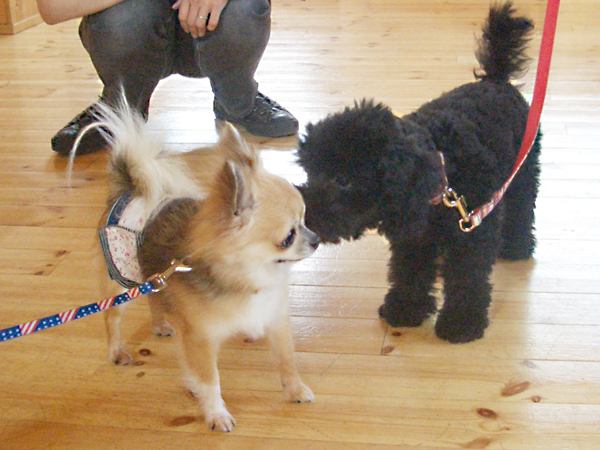 どちらもとってもフレンドリーに 他のワンちゃんに 挨拶が出来ます。良い子ですね♪