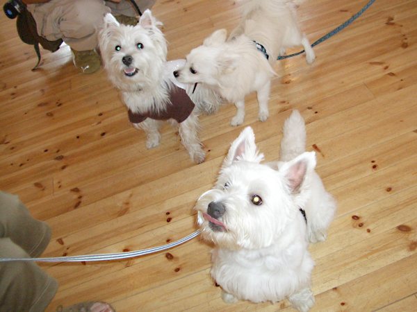 やっと会えたウェスティーの ラッキーちゃんとレオ君 ボクもヨロシクってナッシュ君!