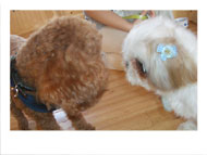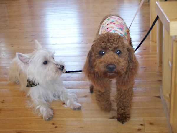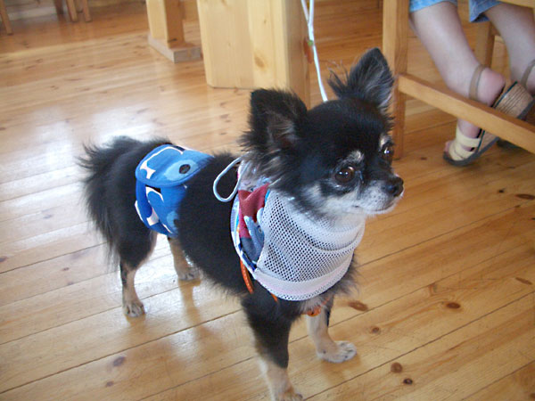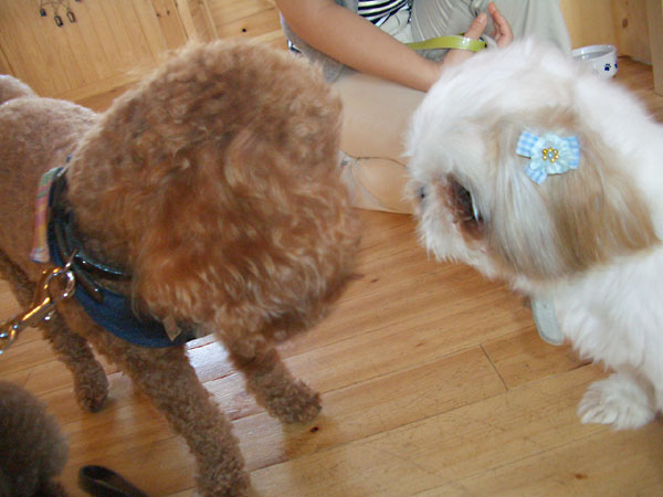 4ヶ月のピアノちゃんの カフェデビューです。 やさしいワンちゃんばかりで 良かったね♪