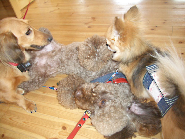 お友達が増えましたね。 いろんなワンちゃんと 仲良く遊べるしゅりちゃんです。