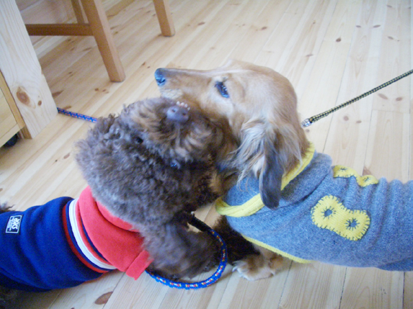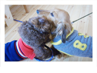 クリスマスプレゼントの服を着て 来てくれました。 めずらしくパパと二人です。